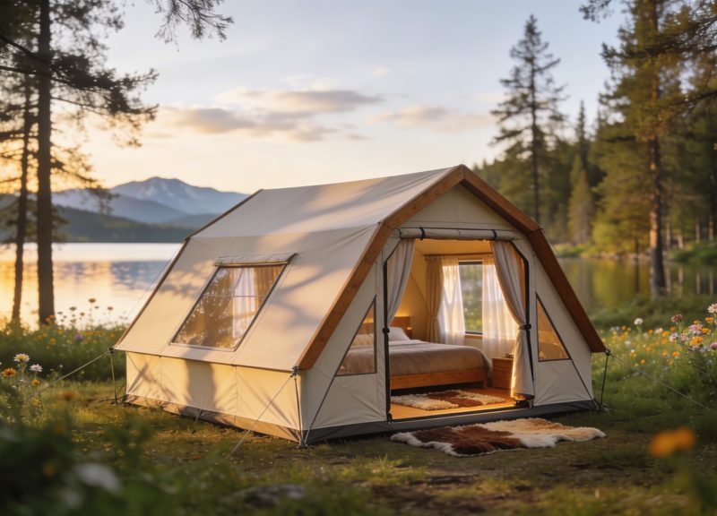 Glamping or camping in a tent in nature
