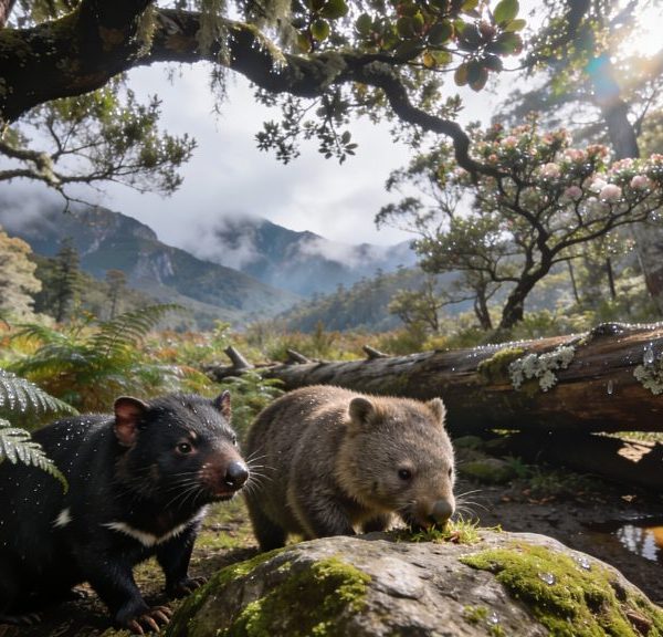 Tasmanian devils and wombats in the wilderness