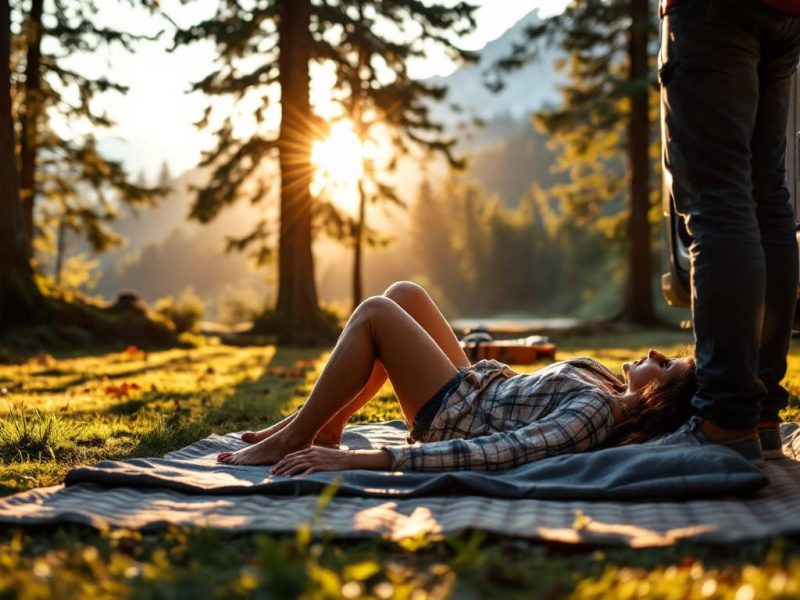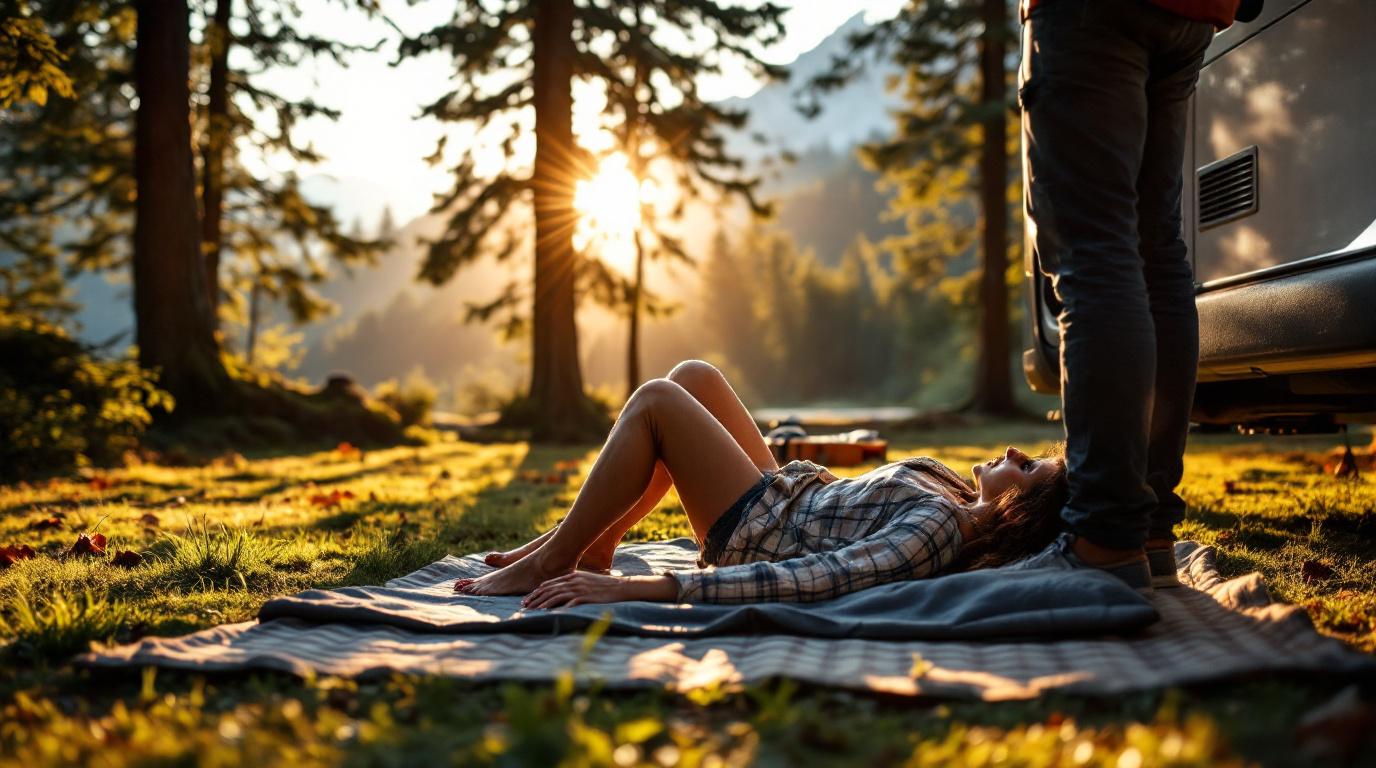 - Awnings or shade sails by the camper