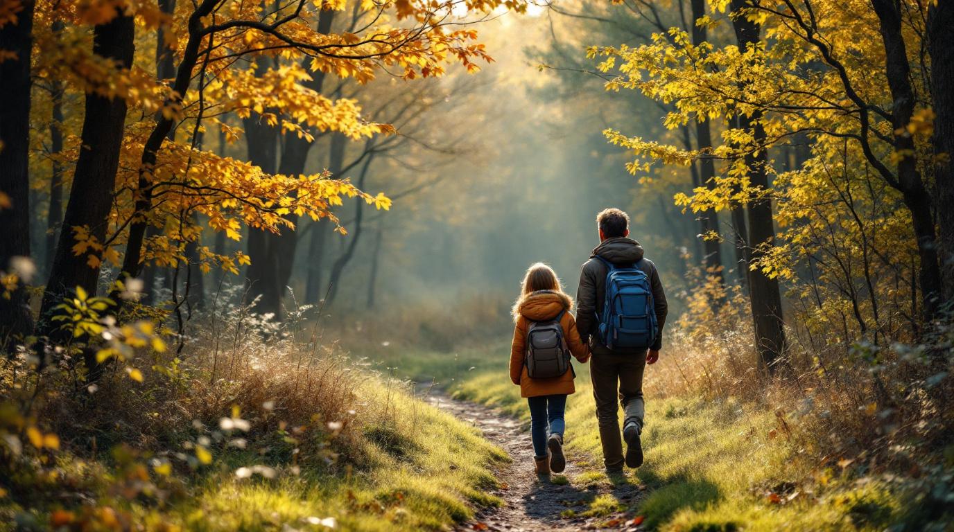 Pack light and with multi-purpose items: layered clothing, good walking shoes, waterproof jackets and quick-drying items that you can wash and reuse. Bring your own basic products (toiletries, first-aid kit, reusable water bottles, snacks) to avoid expensive purchases on site. Choose accommodation where a lot is already provided, such as glamping tents or farm lodges with bedding, cooking utensils and children’s toys. Plan activities that cost little or nothing (nature walks, geocaching, nature playgrounds, petting zoos) so you do not have to pack or pay for expensive outings.
