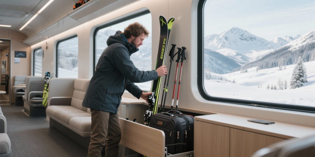 Going on a winter sports holiday by train comes with generous luggage rules for ski transport. Unlike airlines, most train companies let you take your ski and snowboard gear free of charge. This is in addition to your normal suitcases. Read on to discover how to plan your journey comfortably and well prepared.